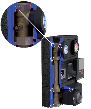 HeatBloC®s sind vormontierte Armaturengruppen für Heizkreise in den Nennweiten DN 20 bis DN 50. Es gibt ein breites Spektrum an Heizkreisen – von direkten HeatBloC®s über gemischte HeatBloC®s mit 3- oder 4-Wege- Mischer oder thermischem Regelventil über Bypassmischer oder 3-Temperatur-Mischer. Modulverteiler und Sonderlösungen